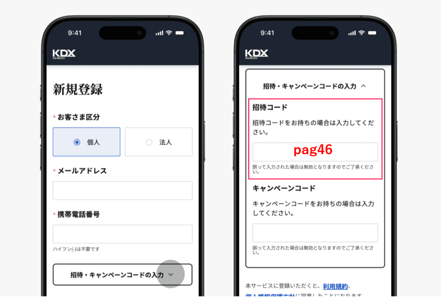 KDX STアプリに新規登録する際に紹介コード 「pag46」 を入力すると、招待した人・された人のそれぞれに1,000円分のAmazonギフト券が配られるお得なキャンペーンが開催されています(終了日未定。 本キャンペーンは予告なく変更・終了する場合があります。)。
