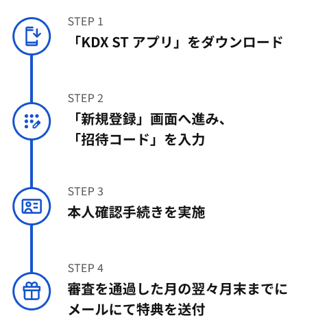 - 被招待者:初めて「KDX ST アプリ」に一般会員登録または本会員登録を行う方